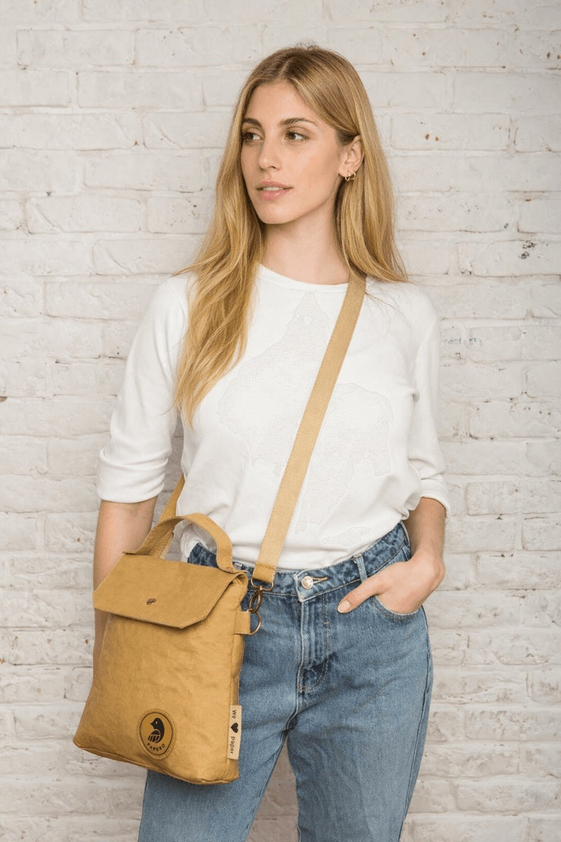 La bolsa Super Light tiene una solapa delantera con un botón magnético y un compartimento principal que incluye un pequeño compartimento. La correa del hombro es ajustable. Otro tema está en la parte posterior.